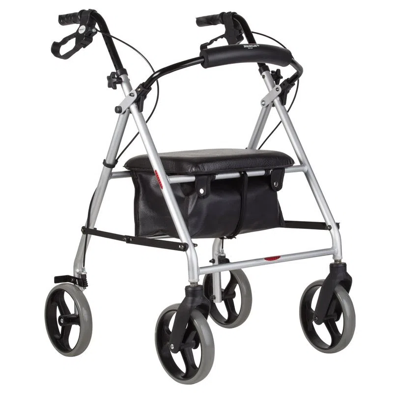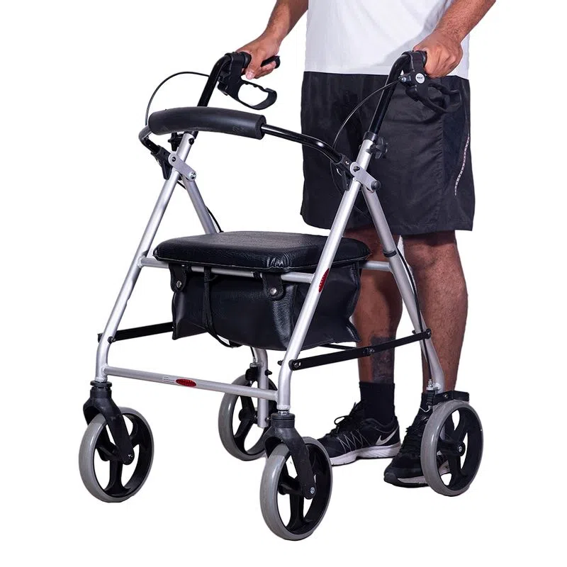 O Andador Mercur com 4 Rodas, Assento e Cesta proporciona apoio, estabilidade e praticidade para pessoas com dificuldades de locomoção ou alterações de equilíbrio.