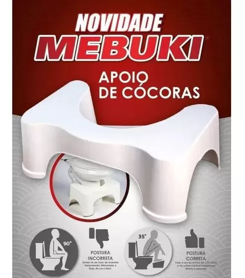 O Apoio de Cócoras Mebuki promove a posição ideal durante o uso do vaso sanitário. Ao elevar os pés e pernas em um ângulo de 35°, ele libera o esfíncter e o cólon, facilitando o processo natural de evacuação.
