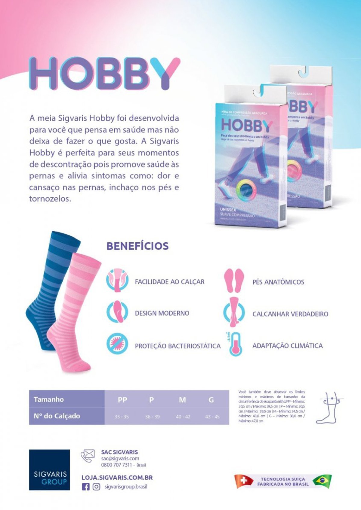 A Meia de Compressão Hobby – Sigvaris foi criada para quem deseja cuidar da saúde das pernas sem abrir mão do conforto. Indicada para uso no dia a dia, a linha combina bem-estar e estilo em situações de lazer ou atividades cotidianas.