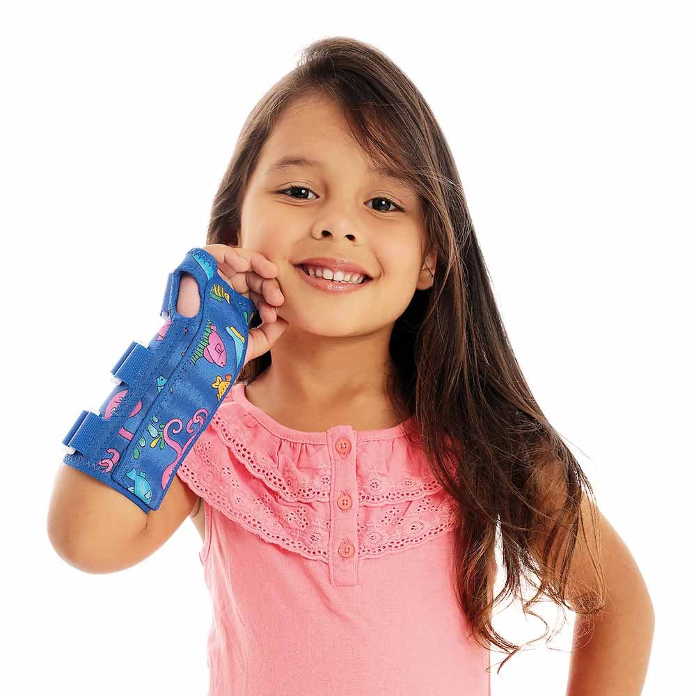Seu design bilateral possibilita a utilização em ambos os punhos, trazendo versatilidade e praticidade. A estampa alegre torna o período de recuperação mais leve, enquanto o material lavável garante higiene e durabilidade.